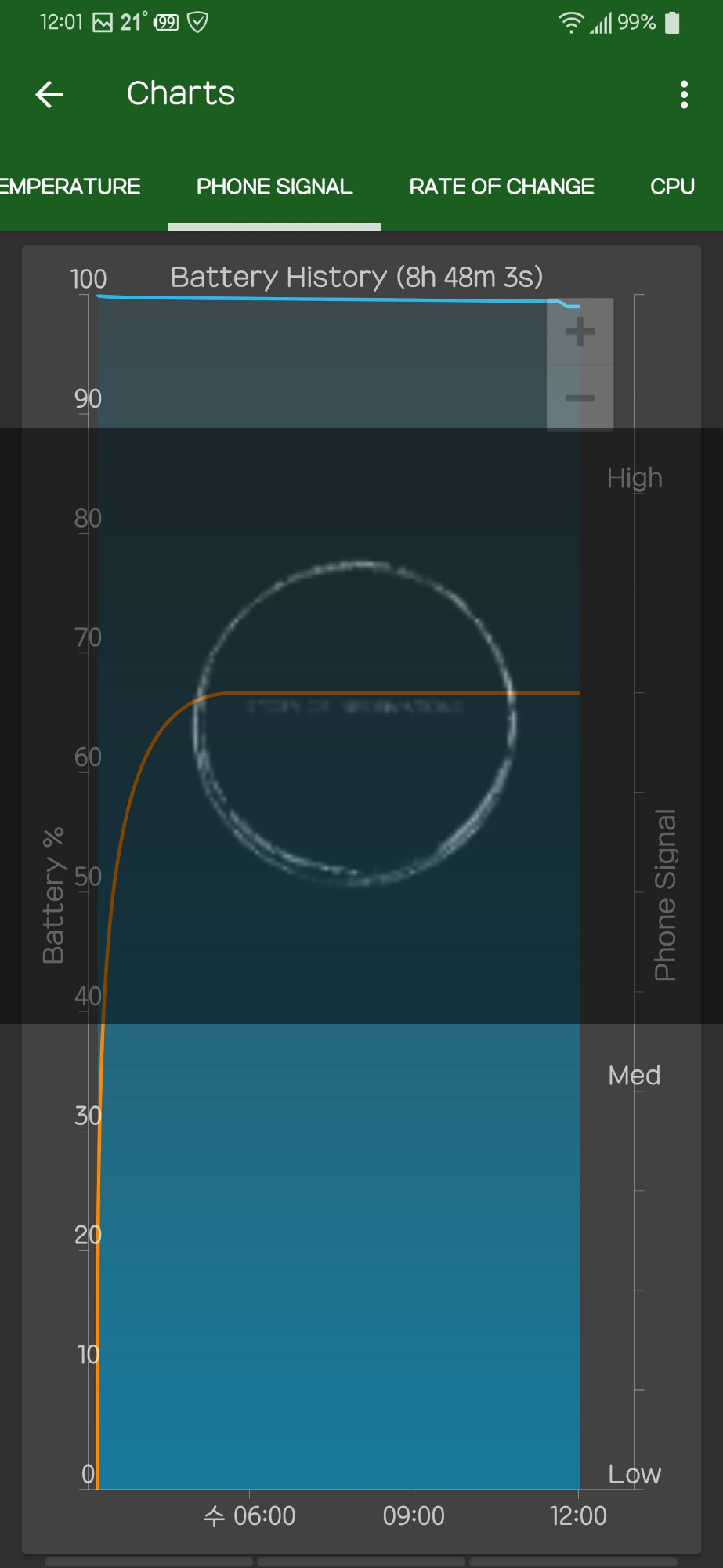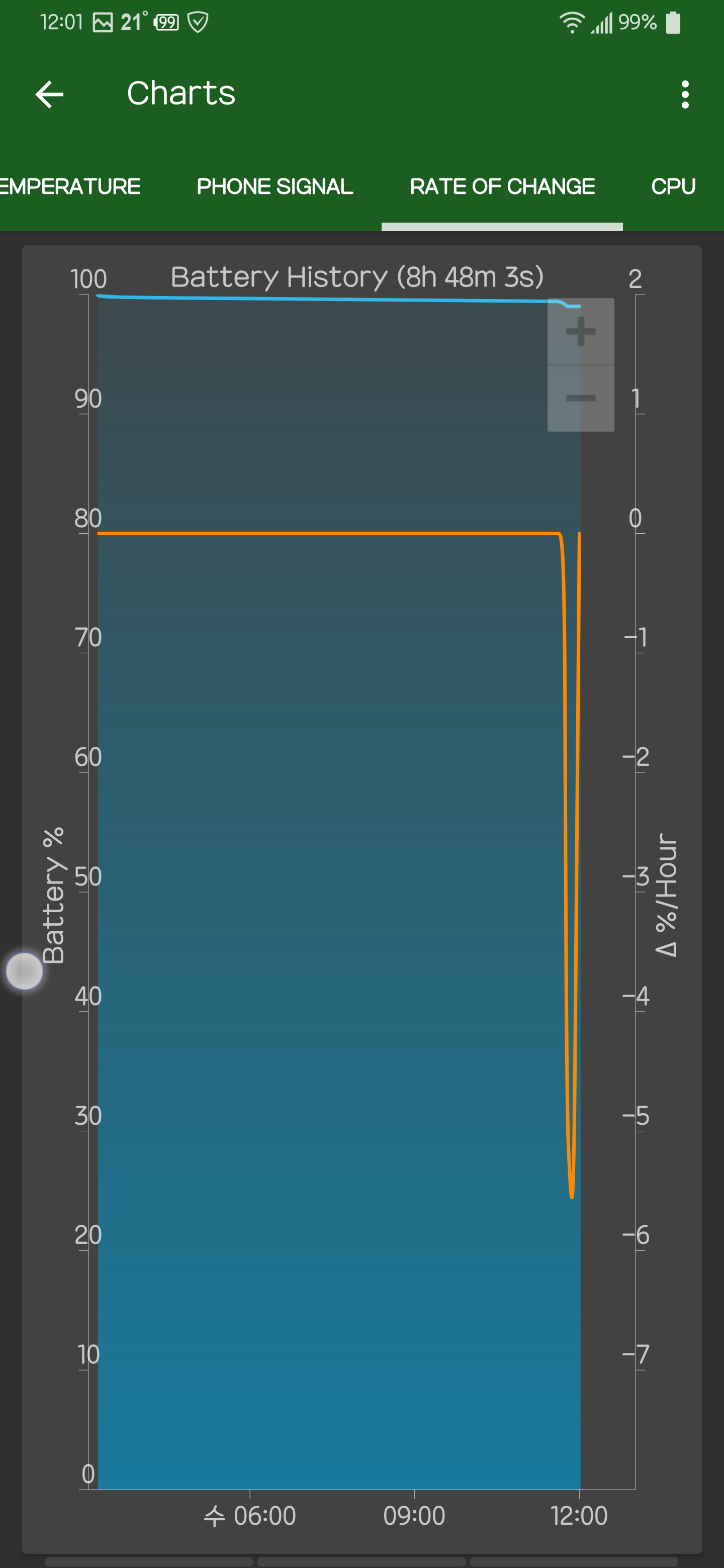 자고 일어나서 측정된 결과 바로 스샷 결과 화면 임다 99% 보이시죠?