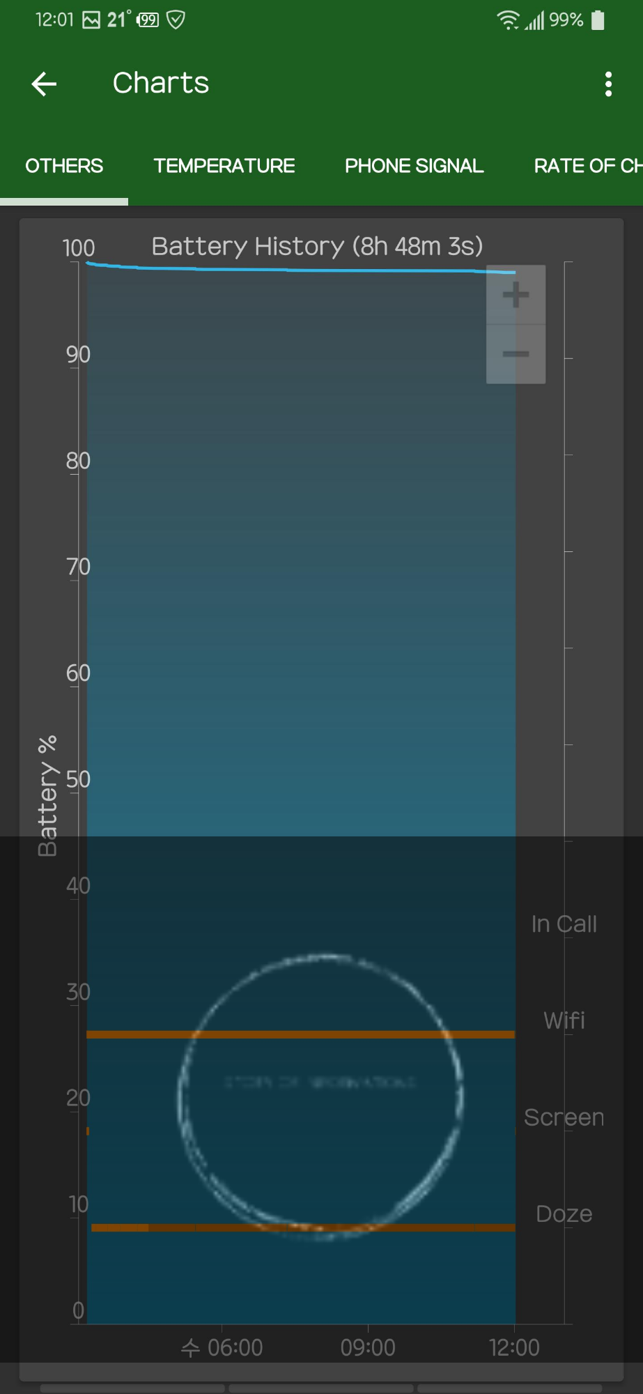 무선ON, 블투Off, 스크린 대기 10분, Doze(절전, 수면(깊은 절전))