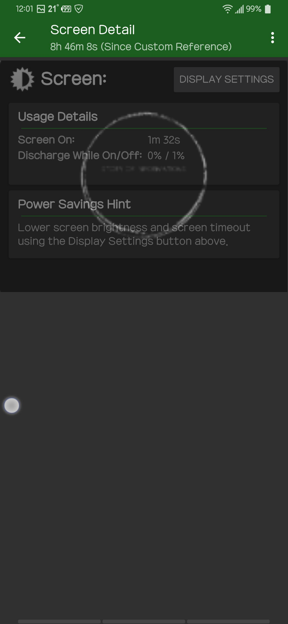화면 사용량 : 화면 켜짐 1분32초 / 방전 1%