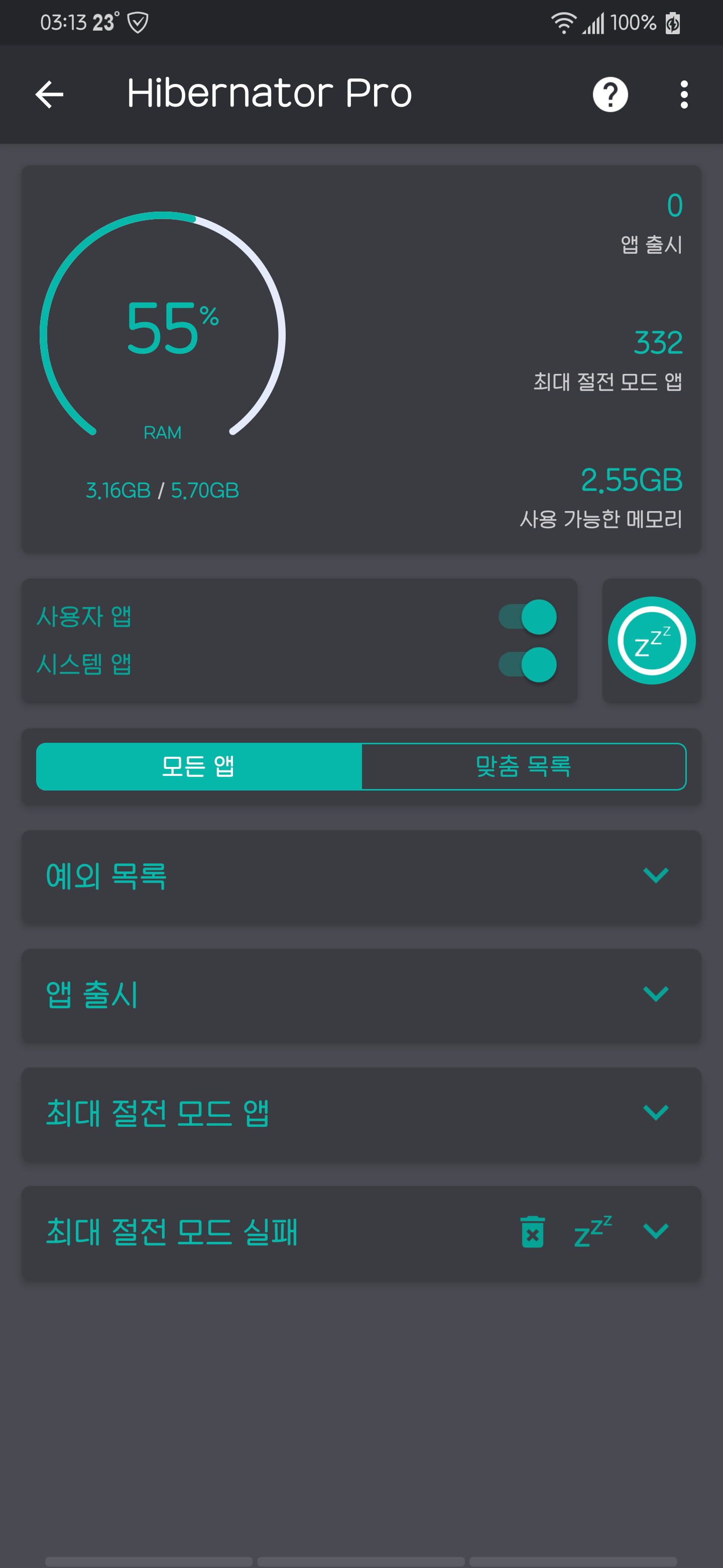 Apious, Doze Mode, GSAM, Hibernator, 기본앱최적화, 도즈모드, 수면모드, 앱킬, 엘지폰도즈모드, 최적화된배터리