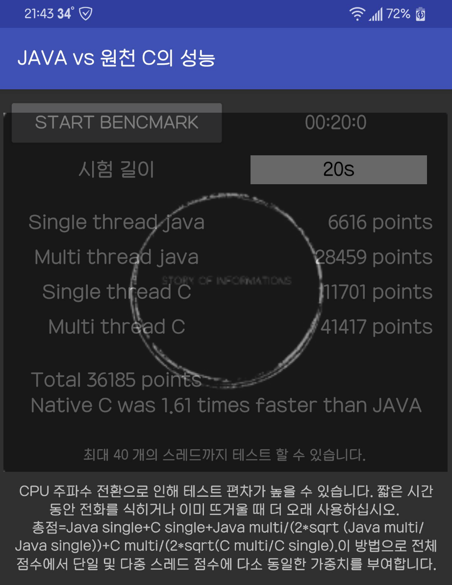 - 일차적인 쓰로틀링 테스트 앱에 기본적인 JAVA C 벤치마크에서 기본 20초 체크 결과 임다