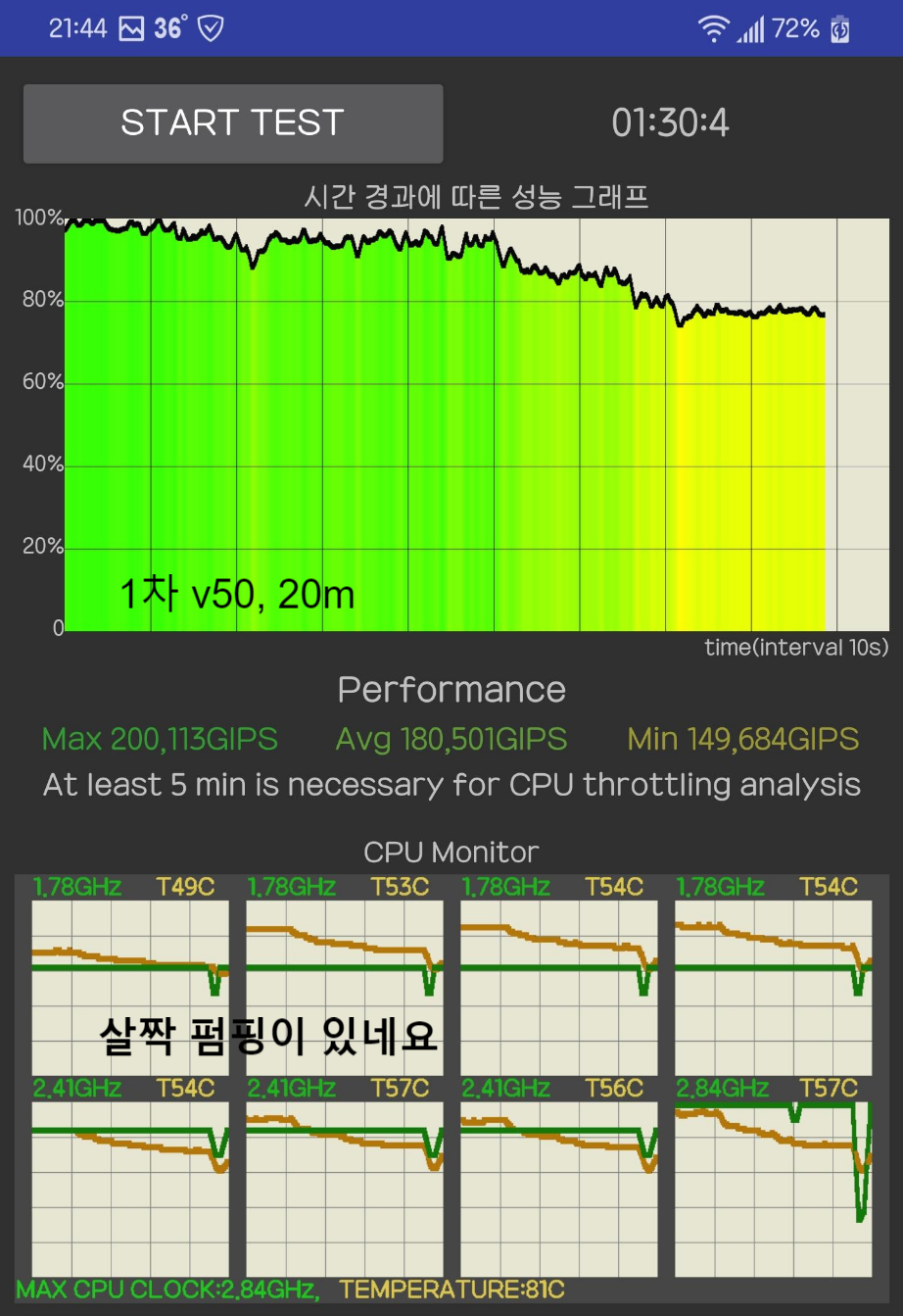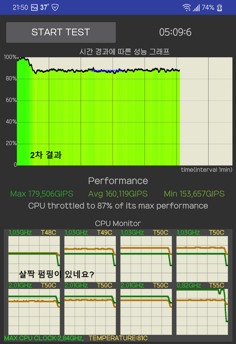 1. 테스트 앱 : CPU Throttling Test / https://play.google.com/store/apps/details?id=skynet.cputhrottlingtest