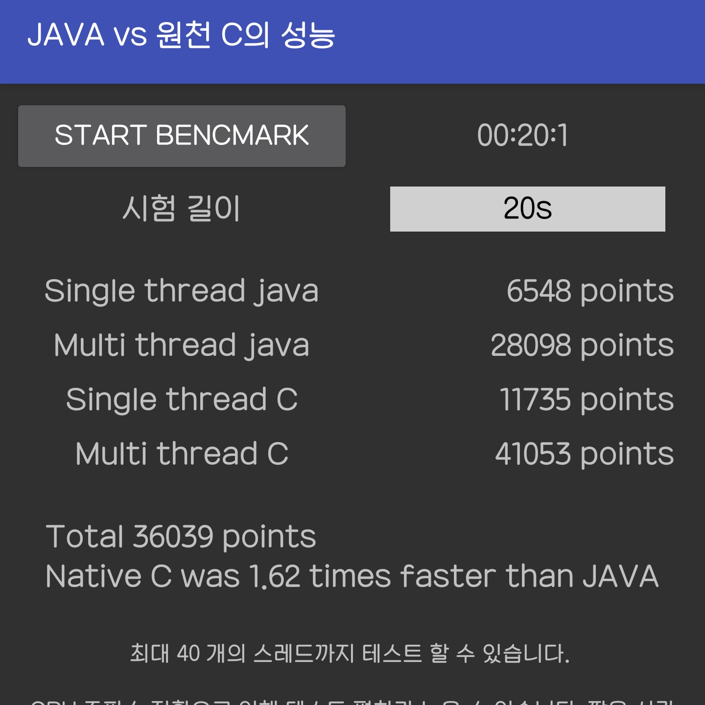 *Java / C 벤치마크 - 쓰로틀링 앱 자체 기본 테스트 입니다