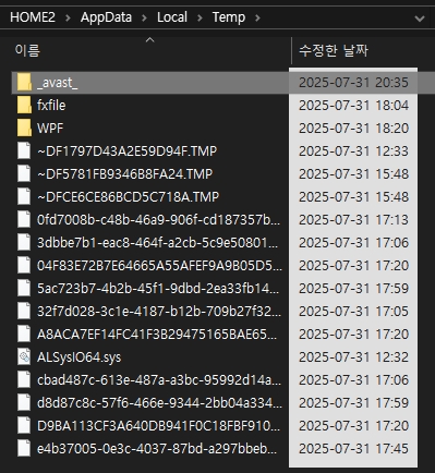 임시 폴더에는 가끔씩 있지만 보통 보이지 않음